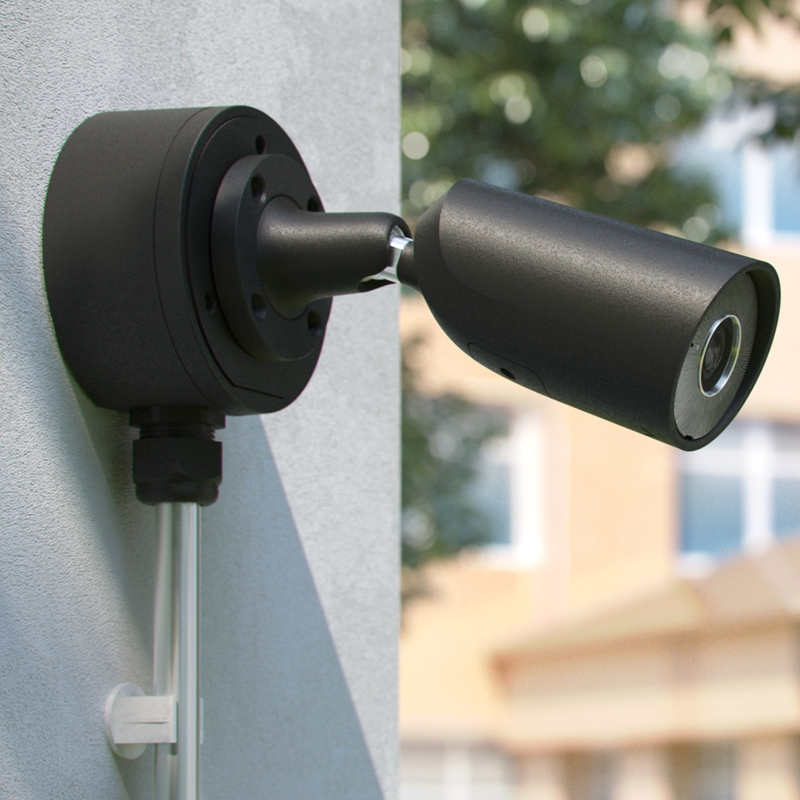 Bezpečnostní krabice pro montáž IP kamery v černé barvě.