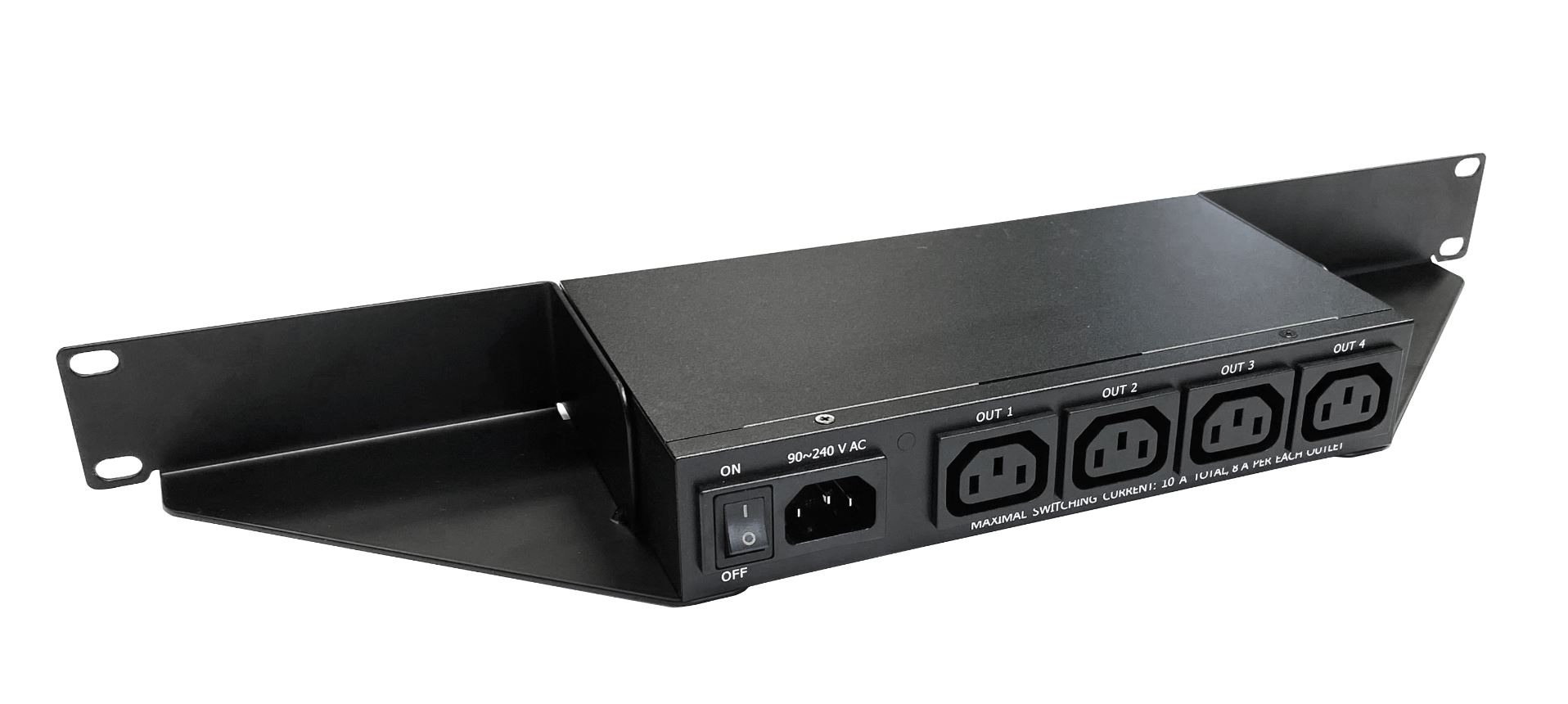 Jednotka RM1 4C je kovový držák značky METIO, který je určený pro PowerPDU 4PS nebo PowerPDU 4C do 19" 1U racku.