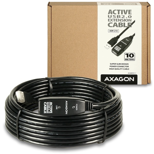 AXAGON ADR-210, USB 2.0 A-M -> A-F aktivní prodlužovací / repeater kabel, 10m