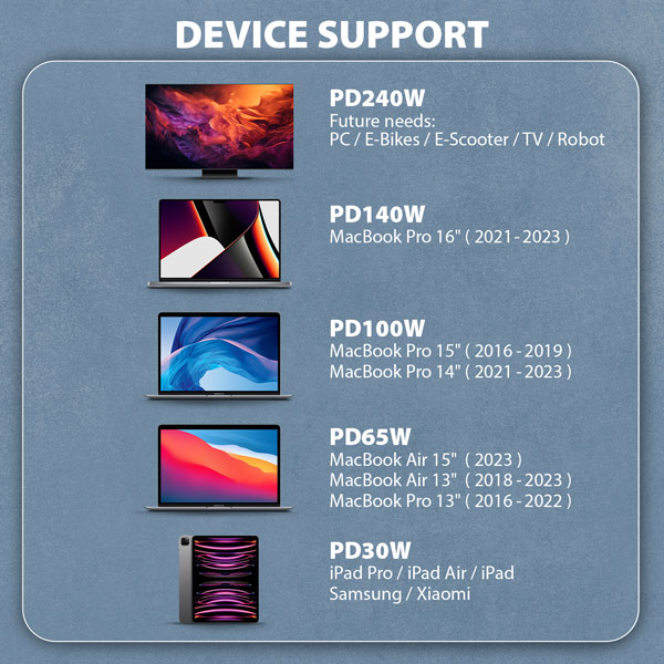 Prémiový propojovací USB-C <-> USB-C datový a nabíjecí AXAGON BUCM2-CM15AB CHARGE kabel s konektory USB-C male na obou koncích. Kabel je navržen zejména pro nabíjení a napájení počítačů, monitorů, notebooků, telefonů, tabletů a dalších zařízení. Podporuje také přenos dat rychlostí až 480 Mb/s. Kabel má implementovánu nejnovější specifikaci nabíjecí technologie Power Delivery 3.1. Tato technologie přináší mimo jiné výkon 240W což je více než dvojnásobek oproti Power delivery 3.0, která dosahuje výkonu 100W. Můžete tak využít nejen standardní rozsah výkonu (Standard Power Range - SPR) pro napětí 5, 9, 15 a 20V s proudem 5A, ale i dostatečný výkon v pevných napětí 28, 36 a 48V s maximálním proudem 5A (Extended Power Range - EPR). Kabel díky nové technologii PD 3.1 můžete využít i pro napájení zařízení s mnohem větším výkonem jako jsou herní notebooky, 4K monitory, elektrické nářadí nebo stále oblíbenější e-koloběžky. Pro identifikaci kabelu a jeho proudových schopností má kabel integrován E-Mark čip. Kabel je také kompatibilní s nabíjecími technologiemi Quick Charge, PPS, Samsung AFC a SFC, Apple, SMART a dalšími. Odolný obousměrný kabel s prodlouženou životností je opatřen kovovými koncovkami, konektory s poniklovaným povrchem a pozlacenými kontakty. Vodiče kabelu jsou vyrobené z pocínované bezkyslíkaté mědi. Kvalitní izolace kabelu, vyrobená z flexibilního TPE, zaručuje maximální odolnost, ale zachovává i dostatečnou ohebnost. Konečnou pevnost kabelu dodává nylonový oplet. Bonusem je praktická páska pro snadné sbalení kabelu. Napájecí vodiče 22AWG (nižší číslo = větší průřez a nižší odpor vodiče) garantují rychlé nabíjení telefonů a dalších mobilních zařízení. Datové vodiče 30AWG spolu s kvalitním stíněním, zajišťují spolehlivý přenos dat. Dvojité stínění chrání přenášené signály před nepříznivým rušením. Nylonový oplet v kombinaci s kabelovou průchodkou podstatně zmírňují nebezpečný ohyb kabelu. Životnost kabelu je tak prodloužena na více jak 8000 standardních ohybů. Mechanickou odolnost kabelu zvyšují také hliníkové kryty koncovek. Konektory: • 2x USB-C (M) male / samec. Další vlastnosti: • DATA SYNC & FAST CHARGING - současný přenos dat a nabíjení připojeného zařízení. • USB 480Mbps (USB 2.0), kompatibilní s USB 1.1. • Podpora přenosových rychlostí 480 / 12 / 1.5 Mb/s. • Podporované technologie nabíjení: Power Delivery 2.0/3.0/3.1 - 240W (48V/5A), Qualcomm Quick Charge 2.0 / 3.0 / 4+, PPS, Samsung Adaptive Fast Charging a Super Fast Charging, Huawei Fast Charge Protocol, Apple Fast Charging, SMART Charging a další. • Podpora specifikace Extended Power Range (EPR) do 240W a specifikace Standard Power Range (SPR) do 100W. • Podpora rychlého nabíjení proudem až 5A. • Integrovaný E-MARK čip. • Kabel obsahuje napájecí vodiče 22AWG, datové vodiče 30AWG. • Vodiče z pocínované bezkyslíkaté mědi pro omezení oxidace, zvýšení vodivosti a čistý signál bez zkreslení. • Stínění pokovenou fólií a opletením z pocínované mědi minimalizuje rušení a zabraňuje ztrátě signálu. • Poniklované konektory a pozlacené kontakty zamezují oxidaci a zajišťují spolehlivé spojení. • Vhodný pro počítače, notebooky, mobilní telefony, tablety, powerbanky, elektrické nářadí a další zařízení s USB-C konektorem. Další údaje: • délka kabelu 1.5 m, • vnější průměr kabelu 4.6 mm. Balení v zataveném fóliovém obalu s potiskem a s otvorem pro zavěšení obsahuje: • USB-C M <-> USB-C M kabel černé barvy, • stahovací páska.