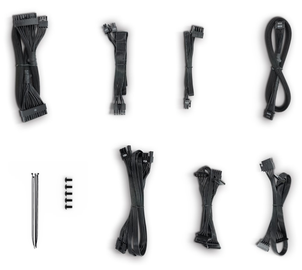 Konektory: 1× ATX 20+4pin, 1× EPS 4+4pin, 1× EPS 4pin, 2× PCIe 6+2pin, 1× PCIe 12+4pin (12V-2x6), 5× SATA, 2× Molex