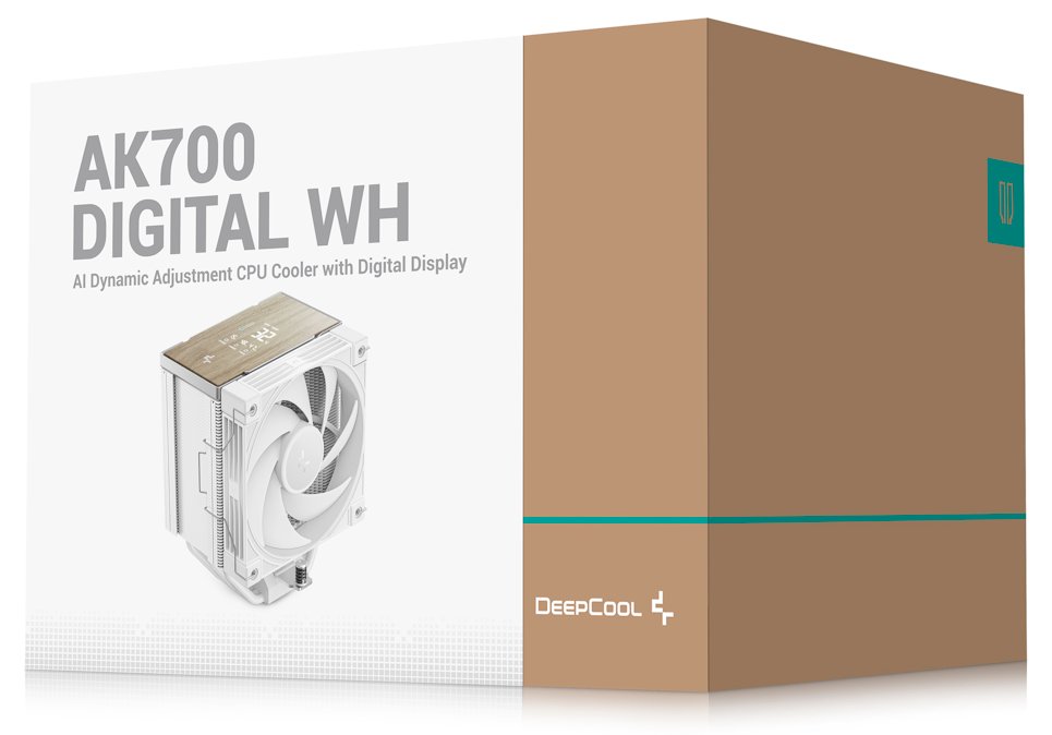 Chladič AK700 DIGITAL WH představuje vylepšenou verzi legendární série AK DIGITAL s důrazem na špičkový chladicí výkon a moderní monitorovací funkce. Vybavený sedmi měděnými heatpipe o průměru 6 mm a hustým věžovým chladičem zajišťuje efektivní odvod tepla i u nejvýkonnějších procesorů. Integrovaný čtyřsegmentový digitální displej poskytuje přehled o teplotě, využití, spotřebě a frekvenci procesoru v reálném čase.