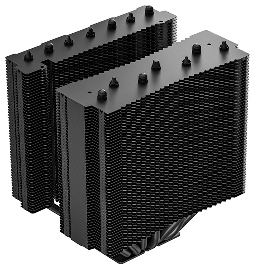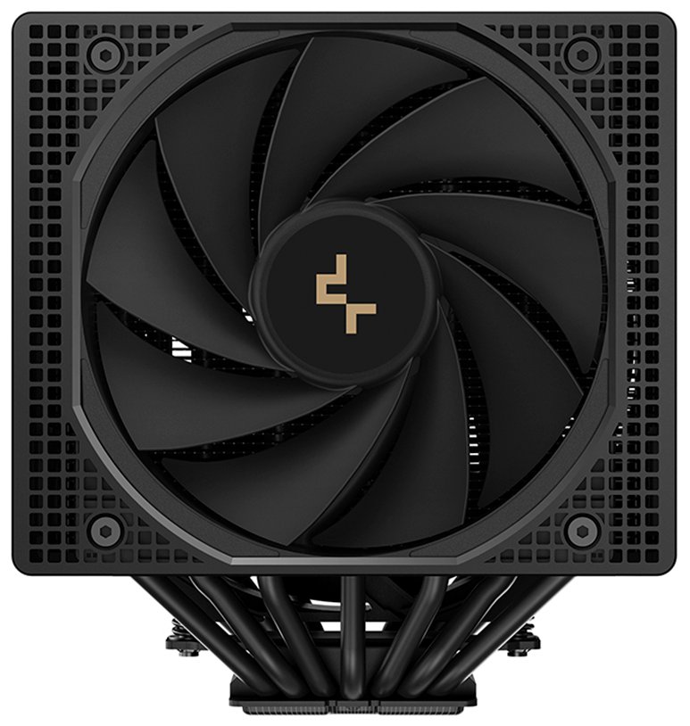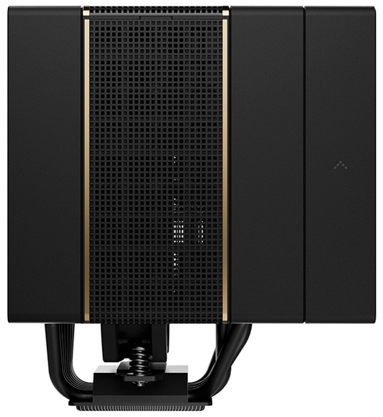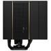 Centrálně umístěný 140mm ventilátor zasahuje hluboko do srdce chladiče a vytváří sekundární proudění vzduchu, které dodatečně chladí okolní VRM komponenty na základní desce. Čistý a elegantní kryt pomáhá směrovat vzduch skrz věže žeber.