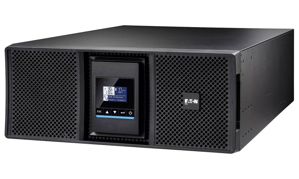 Eaton 9SX Gen2 UPS, 11000 VA, 11000 W, Input: Hardwired, Outputs: (8) C13, (4) C19, Hardwired, Rack/tower, 4U PARAMETRY Barva: Černá VA rating: 11000 Příkon: 11000 Napětí: 230V Primární frekvence min/max: 40/70 Zásuvka: (8) C13, (4) C19, Hard...Více info
