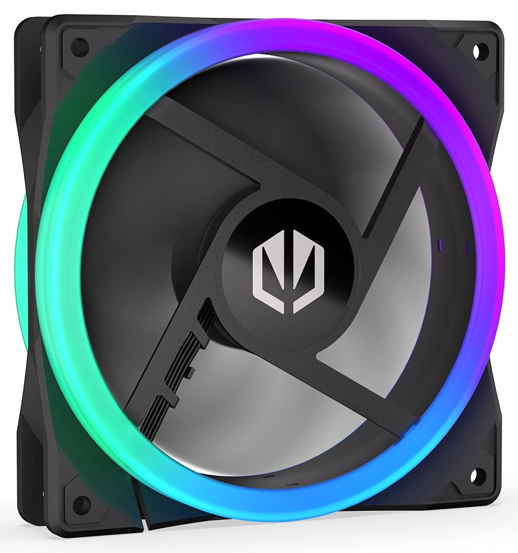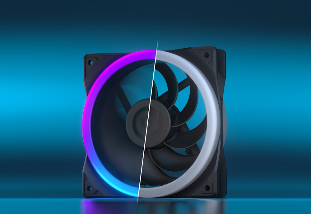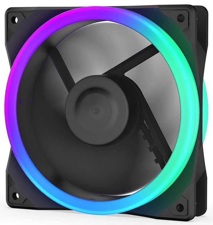 Stylový 120mm ventilátor s obráceným prouděním vzduchu a oboustranným ARGB podsvícením pro moderní PC sestavy.