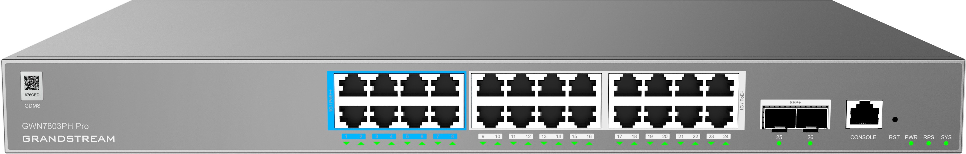 Grandstream GWN7803PH Pro L2++ Managed switch, 24 portů, PoE++, SFP+