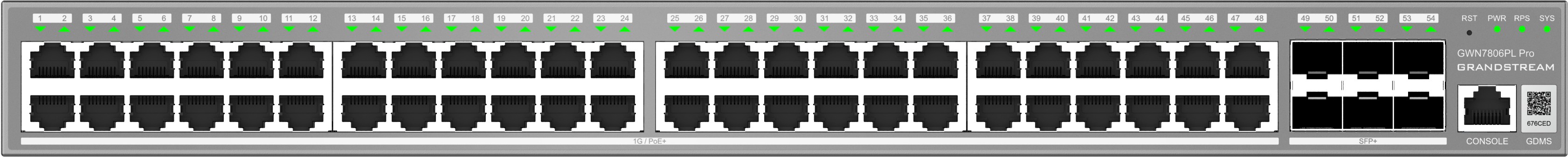 Grandstream GWN7806PL Pro Layer 2++ Managed switch, 48 portů, 6x SFP+, PoE+