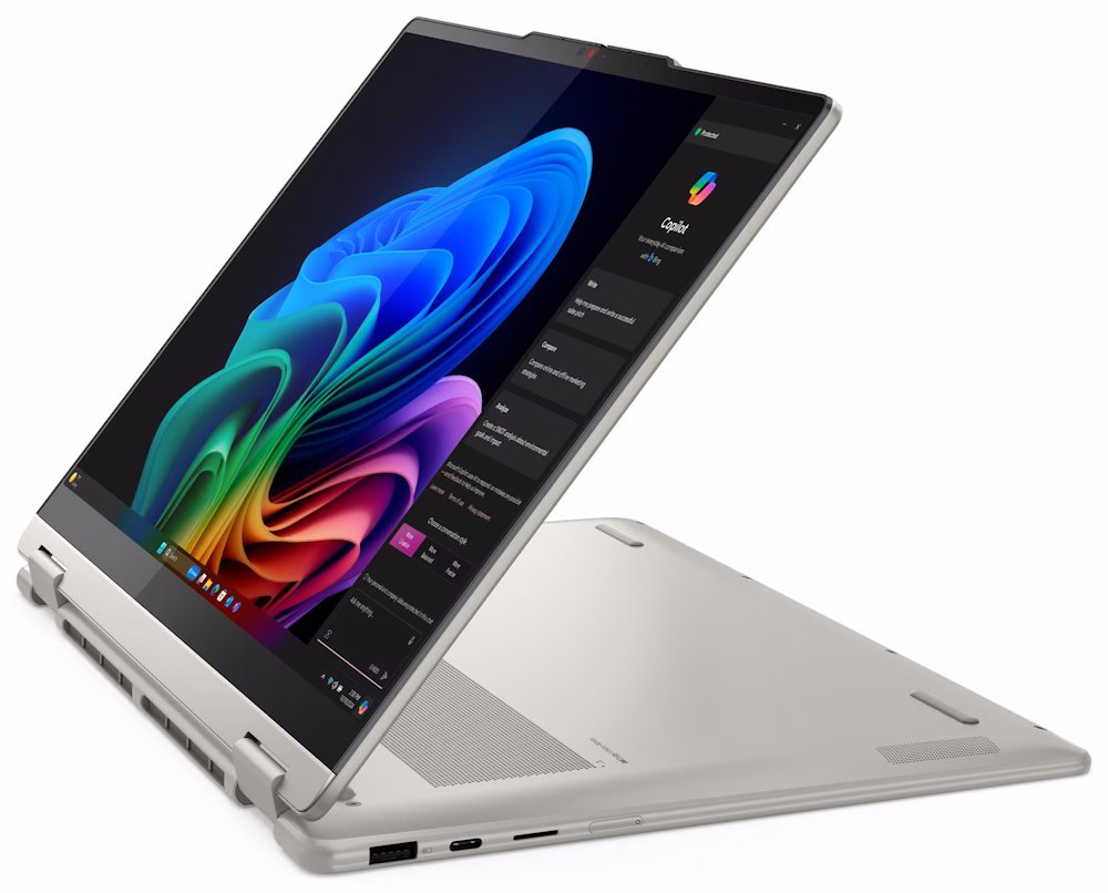 Konvertibilní notebook s AMD Ryzen AI 7 350 procesorem a AI akcelerací až 50 TOPS. 14" WUXGA OLED displej s 100% DCI-P3, 16GB LPDDR5X RAM, 1TB SSD, stylus Lenovo Yoga Pen, certifikace MIL-STD-810H, Windows 11 Home.Více info