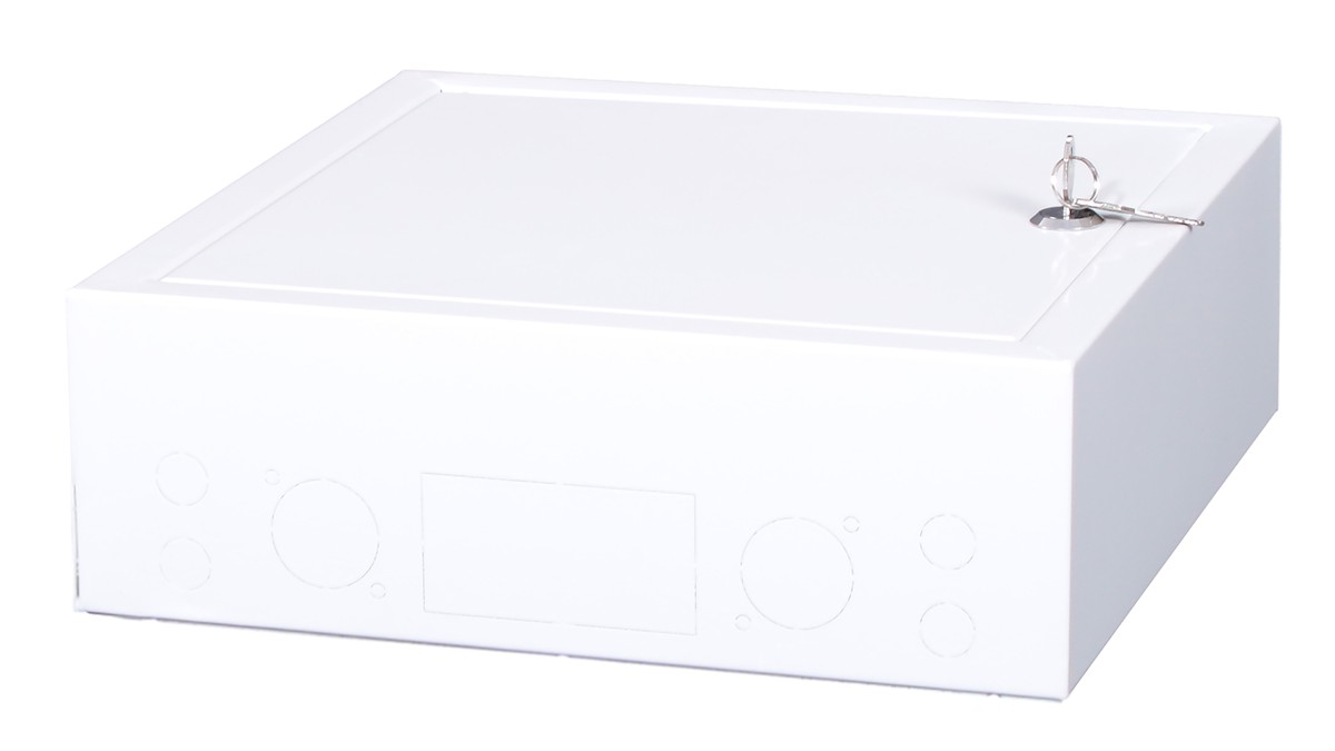 Celokovová uzamykatelná rozvodná skříň pro vnitřní použití v šedé barvě s rozměry 300x300x100mm disponuje několika vylamovacími otvory na horní a spodní straně. Uchycení na zeď 4 montážními otvory na zadní straně skříně. Skříň je vyrobena z pozinkovaného plechu s lesklou lakovou úpravou. Montovat lze s otevíráním vlevo i vpravo.