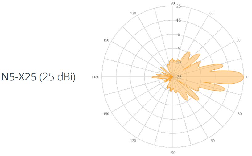 N5-X25 je parabolická směrová anténa se ziskem 25dBi a vyzařovacím úhlem 8° pro použití s jednotkou C5x. Jednotka C5x se k anténě připojuje pomocí Twist-on konektoru, který eliminuje ztráty způsobené VF kabeláží a konektory.