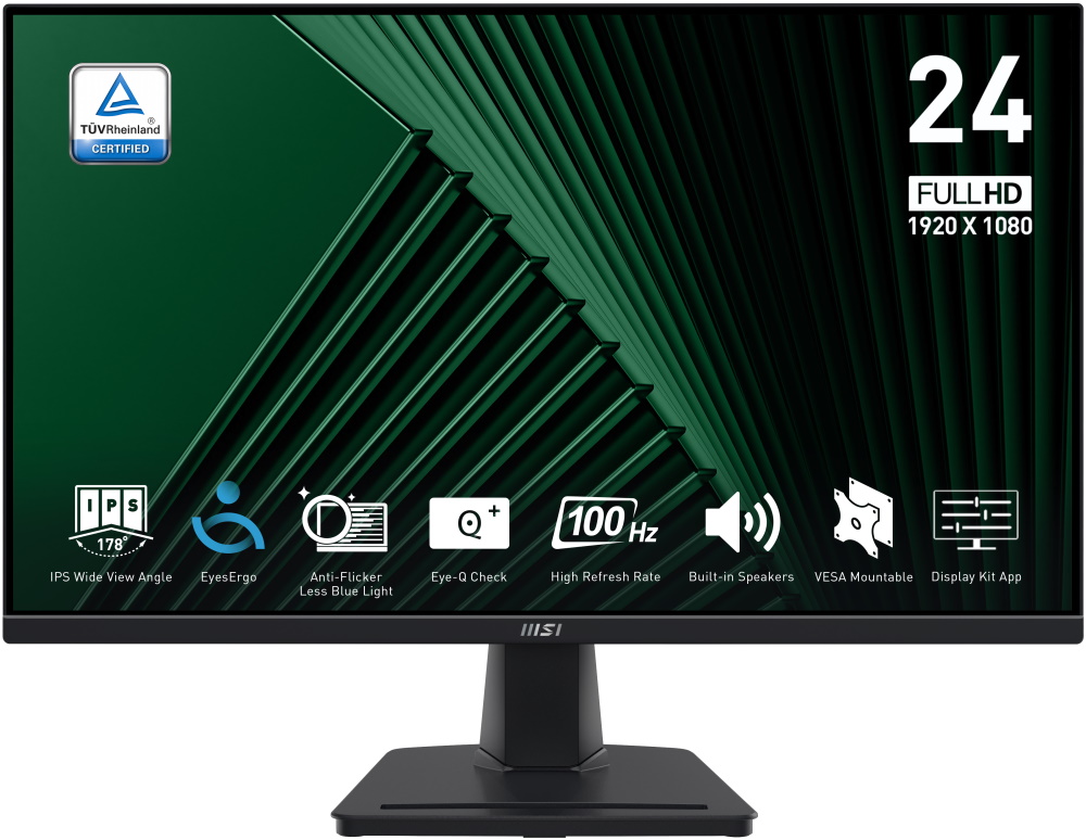 MSI PRO MP245G/ 24"/ 1920x1080/ IPS/ 4ms/ 100Hz/ 300cd/m2/ 1300:1/ HDMI/ DP/ VESA/ černý