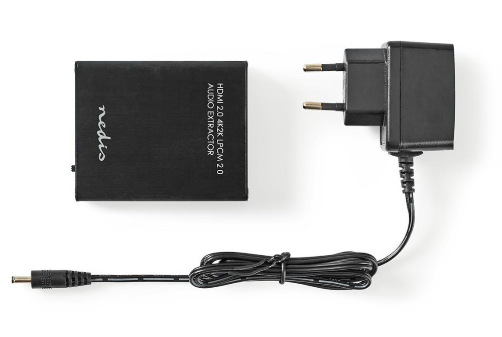 HDMI extraktor, napájecí adaptér (5 V DC, 2 A, kabel 1 m), rychlý průvodce.