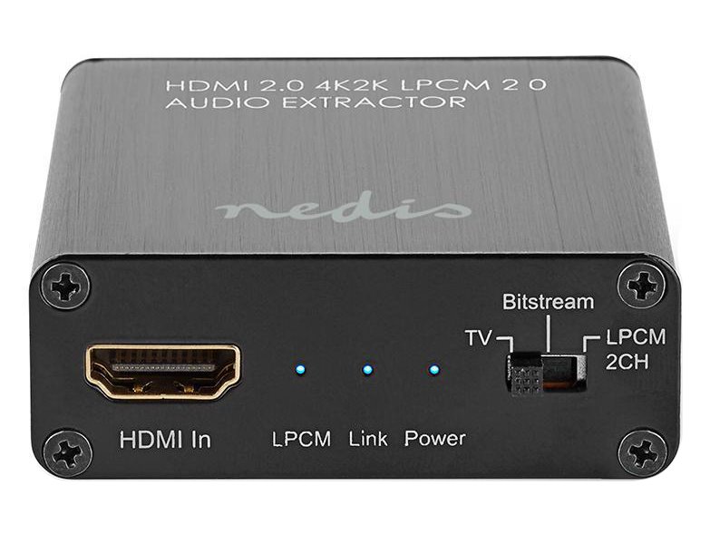 (Registrace)NEDIS HDMI extraktor/ HDMI vstup/ TosLink zásuvka/ 1x 3.5 mm/ 1x HDMI výstup/ 4K@60Hz/ 18 Gbps/ kov/ antracit