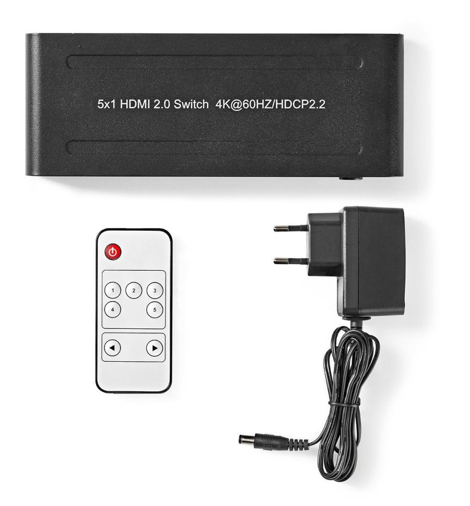 (Registrace)NEDIS HDMI přepínač/ 5x HDMI vstup/ 1x HDMI výstup/ 4K@60Hz/ 18 Gbps/ dálkově ovládané/ kov/ antracit