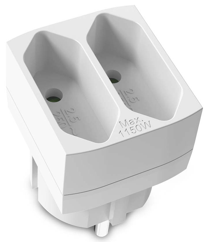 Kompaktní rozbočovač umožňuje rozdělení jedné zásuvky typu E nebo F na dvě euro zásuvky typu C (CEE 7/16). Díky kompaktním rozměrům 62 × 45 × 40 mm a hmotnosti pouhých 33 g nezabírá mnoho místa a hodí se jak do domácnosti, tak na cesty.