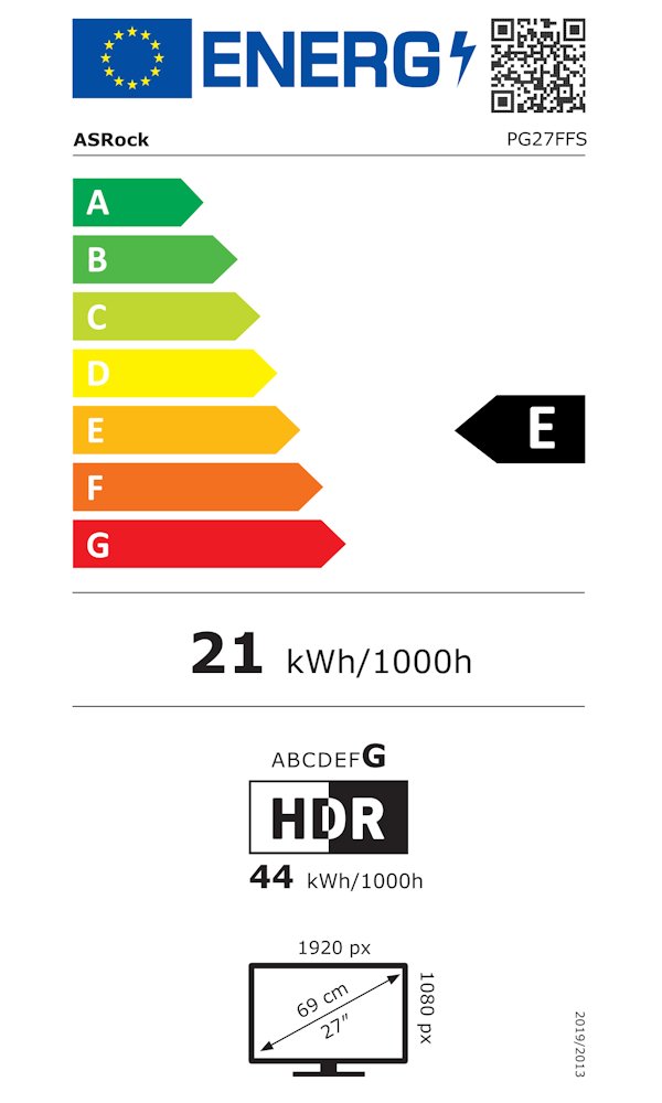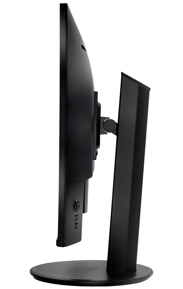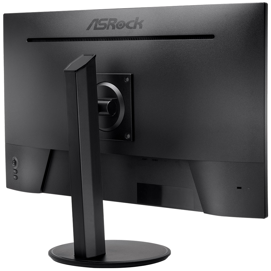 Monitor vyniká moderním minimalistickým designem v černém provedení s bezrámečkovým designem ze tří stran. Ergonomický stojan umožňuje nastavení výšky 0 až 130 mm, náklon -5° až +23°, otáčení o 360° a pivot ± 90° pro optimální pracovní pozici. Technologie Flicker Free a ASRock Low Blue Light snižují namáhání očí při dlouhodobém používání.
