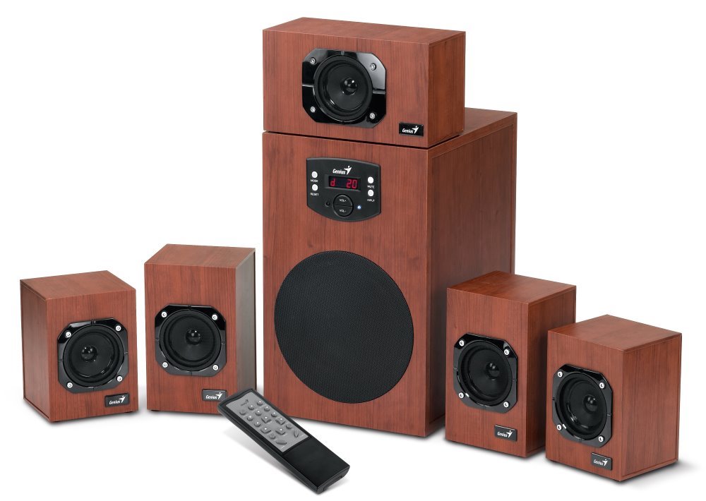 (Registrace)POŠKOZENÝ OBAL - GENIUS repro SW-HF 5.1 4600 Ver. II/ 5.1/ 120W/ Dřevěné/ Dálkový ovladač