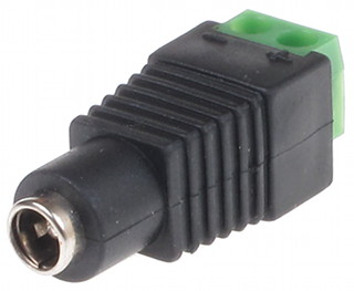 F-21-55 je napájecí redukce ze dvou-pólové svorkovnice na zdířku pro standardní DC jack o velikosti 2.1/5.5mm. Redukce je vhodná například když potřebujete na svůj napájecí adaptér připojit LED pásek, který má připravené kabely s označením + a -.