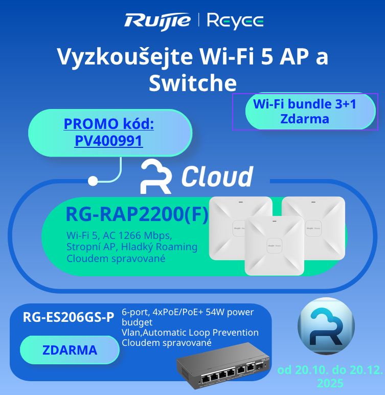 WiFi 5 Balíček; 3x Stopní AP RG-RAP2200 (F) + zdarma switch RG-ES205GC-P;Více info