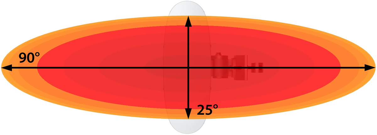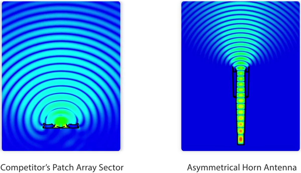 Asymetrická AH90WB anténa nevyzařuje boční laloky, doslova zaměřuje energii na jeden hlavní signální paprsek. Takové chování je jedno z nejdůležitějších v bezdrátových sítích. Díky těmto jedinečným vyzařovacím vlastnostem sbírá rádio ve srovnání se stávajícími anténami běžného sektoru značně méně šumu. Problém šumu je přímo spojen s bočními laloky antény - v zásadě nevyhnutelným prvkem ve většině konkurenčních produktů. AH90WB anténa se chová jinak, je v podstatě "hluchá" mimo hlavní paprsek.