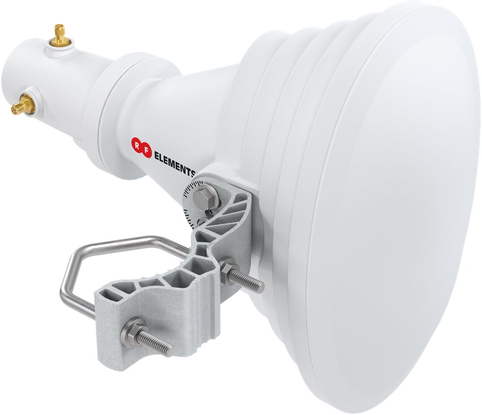 StarterHorn anténa od RF elements je asymetrická sektorová anténa se ziskem 17 dBi, s vyzařovacím úhlem 30°/45° a lze ji instalovat na držák či stožár o průměru 20 až 55 mm. Tato anténa nabízí perfektní kombinaci vlastností a funkcí, které řeší hlavní slabiny dnešních mainstreamových sektorových antén. Anténa je dodávána s redukcí na 2× RSMA female (pro připojení rádií s konektory), kterou lze jednoduše odpojit a místo ní zapojit na přímo jednotky IsoStation či PrismStation od Ubiquiti.