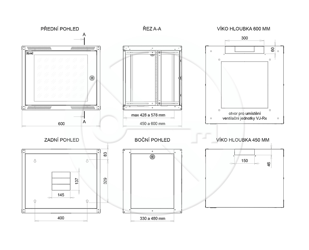 (Registrace)Rozvaděč nástěnný GrandN Duo 9U 450mm, dveře plech, RAL7035, GrandND-9U-645-21-G
