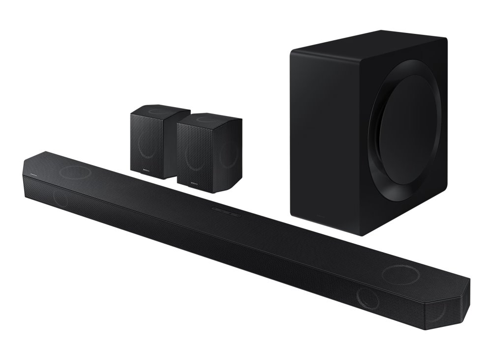 Set soundbaru, subwooferu a dvou reproduktorů v konfiguraci 11.1.4 vhodný pro umístění k televizi. Díky 11 předním a prostorovým kanálům, včetně zadních reproduktorů, 1 kanálu subwooferu a 4 reproduktorům hrajícím směrem nahoru se zvuk pohybuje ve 3 rozměrech a vytváří robustní poslechový prostor. Navíc podporuje technologie Wireless Dolby Atmos, Q-Symphony a SpaceFit Sound Pro. Připojení k televizi či mobilnímu zařízení lze jednoduše realizovat přes bezdrátové rozhraní Wi-Fi nebo Bluetooth. Pohodlné ovládání je možné díky přiloženému dálkovému ovládání nebo podpoře hlasových asistentů Alexa, AirPlay či Google Assistant díky vestavěné funkci Chromecast.