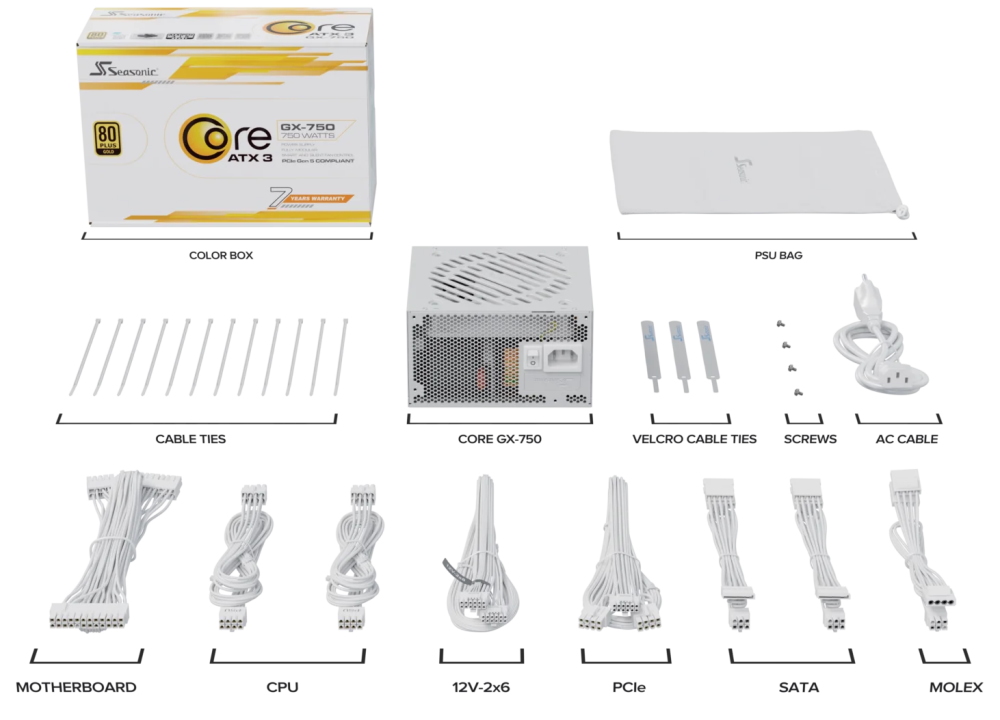 (Registrace)SEASONIC zdroj 650W Core GX-750, ATX 3.1, 80+ Gold, bílý