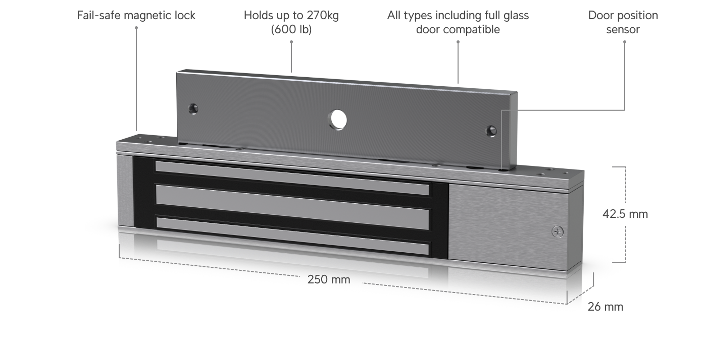 *Zabezpečení Fail-Safe: Zámek funguje na principu "při výpadku proudu odemčeno", což je kritický prvek pro zajištění bezpečného úniku osob z budovy při požáru nebo nouzových situacích. *Vysoká přídržná síla: Extrémně silný elektromagnet udrží dveře bezpečně uzavřené proti tlaku několika set kilogramů, což efektivně brání násilnému vniknutí. *Bezmechanický design: Absence pohyblivých částí minimalizuje opotřebení a hlučnost zámku, což jej činí ideálním pro kanceláře, školy a komerční prostory. *Plná UniFi integrace: Snadné zapojení do UniFi Access Hubu (UA-Hub) umožňuje vzdálenou správu, nastavení časových rozvrhů a okamžitý monitoring stavu dveří.Specifikace