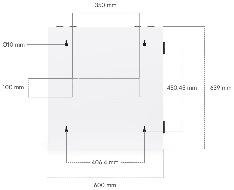 Pro optimální organizaci kabeláže nabízí rack jeden velký otvor v zadní stěně (350 × 100 mm), dva otvory v horní části (235 × 62 mm), jeden otvor ve spodní části (235 × 62 mm) a celkem osm průchodek s průměrem 35 mm v horní a spodní části.
