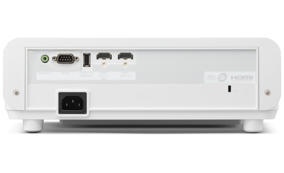 Kromě dvou HDMI portů nabízí projektor USB-A port s výstupem 5 V/1,5 A pro napájení externích streamovacích zařízení, RS-232 pro profesionální ovládání, optický audio výstup a Bluetooth 5.0 pro připojení bezdrátových sluchátek nebo reproduktorů.