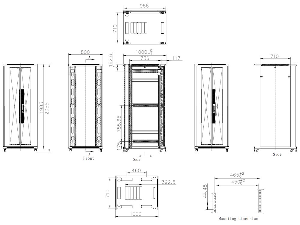 Uzamykatelné dvoudílné přední dveře s vynikajícím zámkem, rukou uzavíratelné a volitelně uzamykatelné boční panely, uzamykatelné zadní dveře. Všechny části lze snadno smontovat.