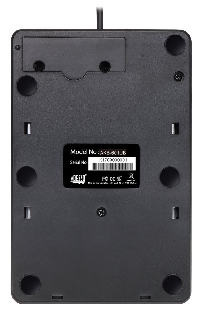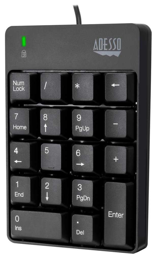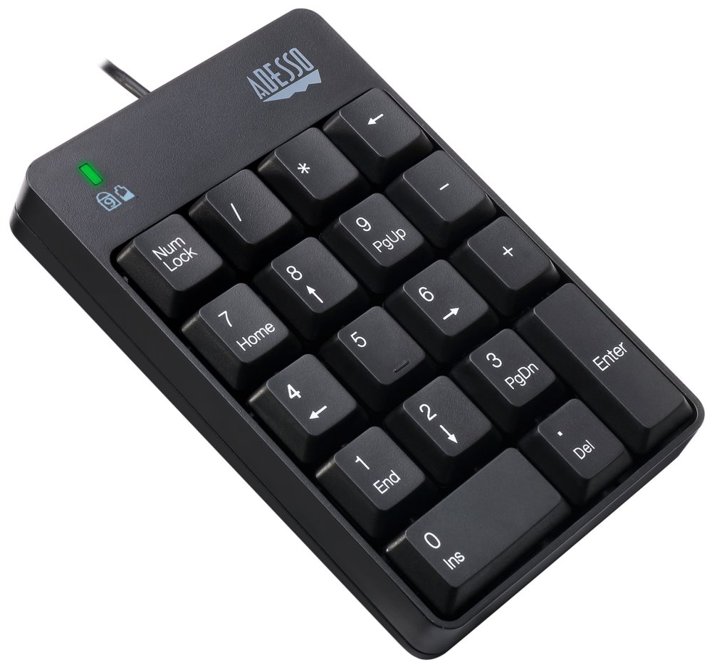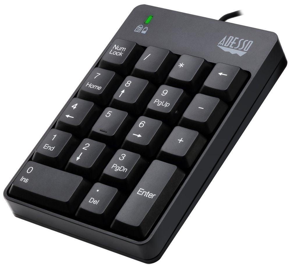 Adesso AKB-601UB; Externí numerická klávesnice odolná proti polití tekutinou pro rychlé a pohodlné zadávání císelných údaju do PC ci notebooku. Pripojení k pocítaci je realizováno skrze 1,8 m dlouhý kabel zakoncený USB konektorem. ZÁKLADNÍ SPECIFIKACE...Více info