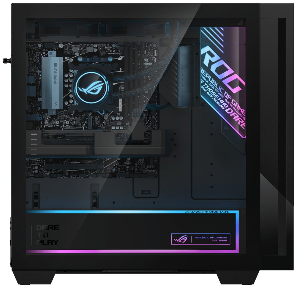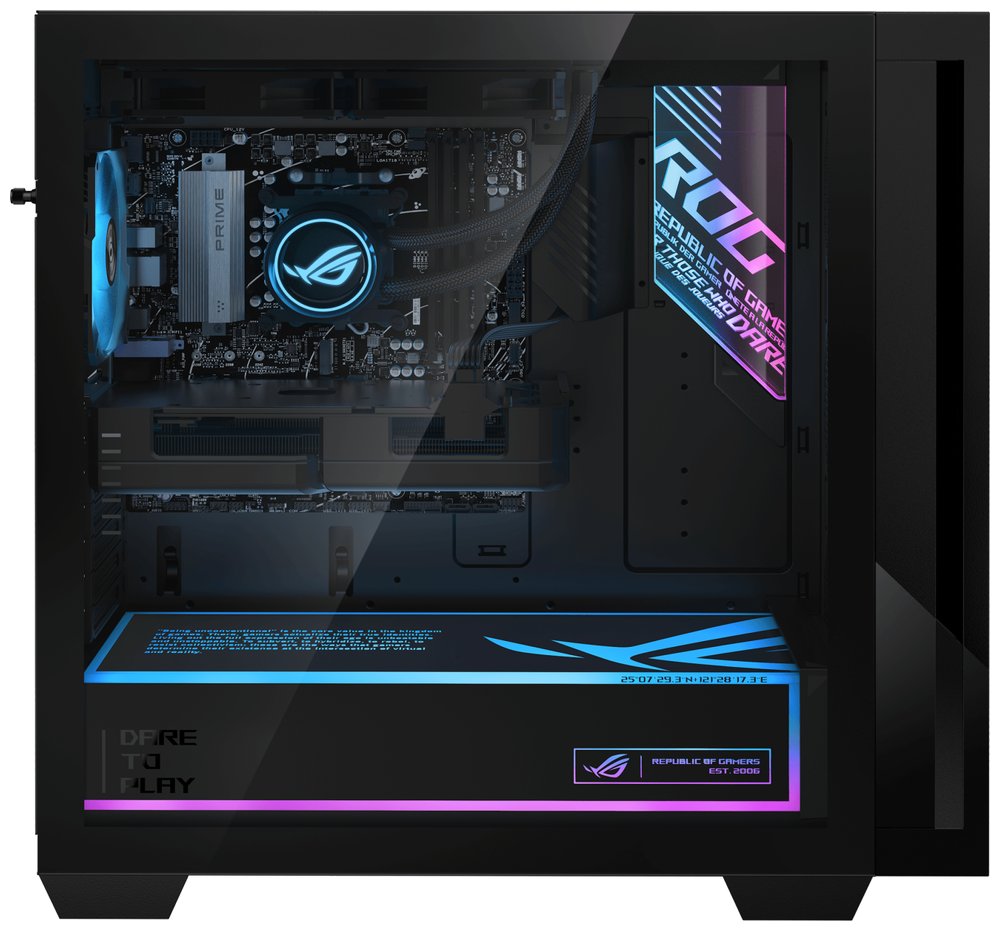 Herní desktop ROG G700 s AMD Ryzen™ 7 9800X3D, NVIDIA® GeForce RTX™ 5080, 64GB DDR5 RAM a 2TB SSD. Vodní chlazení, sklenené panely, RGB osvetlení, snadný upgrade bez náradí.Více info