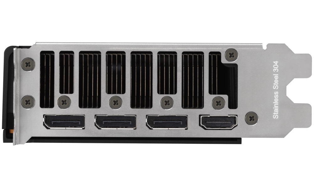 Kompaktní 2slotový design s rozměry 266,7 × 111,1 × 40 mm umožňuje instalaci do menších pracovních stanic a podporuje konfigurace s více grafickými kartami. Ventilátorové chlazení s odlévaným krytem a zpevněnou zadní deskou zajišťuje efektivní odvod tepla i v omezeném prostoru, přičemž speciální vlnový design maximalizuje tepelnou plochu a snižuje teploty paměti až o 16 %.