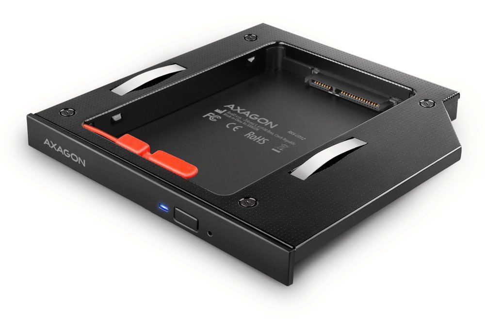 AXAGON RSS-CD12 rámeček pro 2.5" SSD/HDD do DVD slotu, 12.7 mm, LED, hliník
