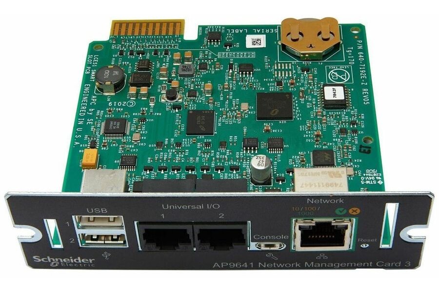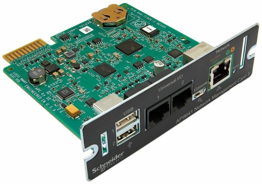 Network Management Card 3 umožňuje bezpečné vzdálené sledování a správu UPS jednotek prostřednictvím webového rozhraní nebo příkazového řádku. Díky vysokorychlostnímu procesoru a Gigabit Ethernet konektivitě poskytuje rychlý přístup s podporou více současně přihlášených uživatelů. Karta nabízí univerzální I/O porty pro připojení teplotního senzoru a další environmentální monitorování.