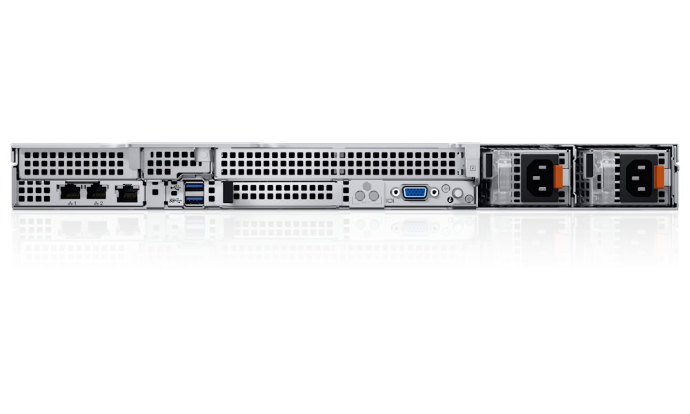 Server disponuje 32 GB DDR5 RDIMM pamětí s frekvencí 5600 MT/s a 480GB SSD SATA diskem s technologií Read Intensive pro spolehlivé ukládání dat. Podpora až 8× 2,5" hot-plug disků (SAS/SATA) umožňuje flexibilní rozšíření úložiště. Redundantní napájení 2× 1100 W Titanium (100–240 VAC) zajišťuje vysokou dostupnost a energetickou efektivitu.