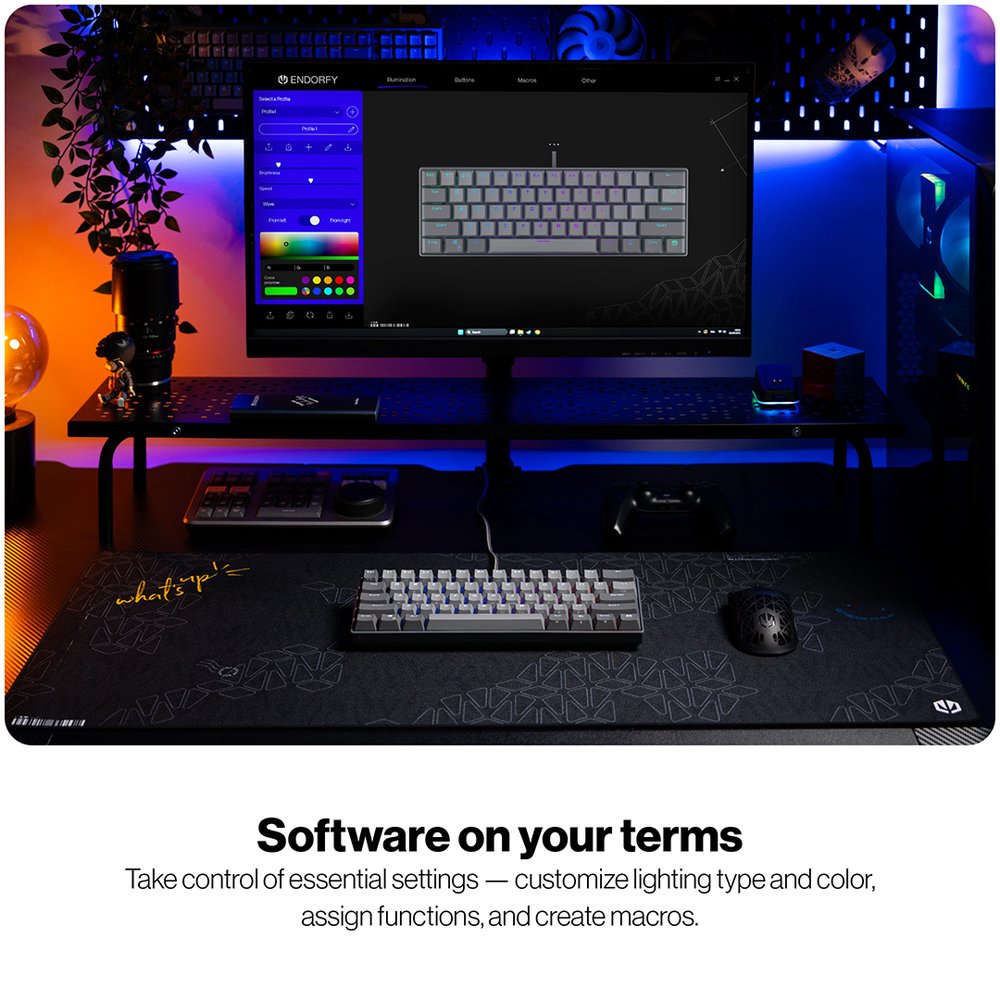 Exkluzivní lineární mechanické spínače inspirované oblíbenými spínači Endorfy Yellow. Mléčné pouzdro zajišťuje lepší rozptyl světla pro podsvícení, zatímco tovární předlubrikace garantuje hladký chod s hlubokým akustickým profilem.