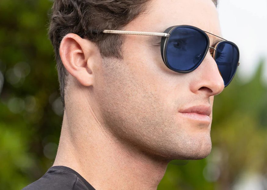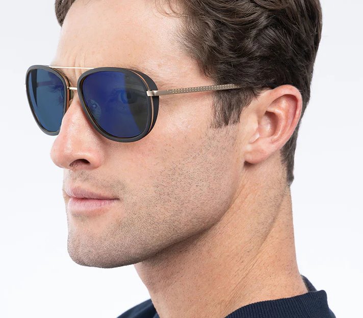 Kancelářské brýle s tmavými skly a jedinečným designem, určené zejména pro venkovní nošení či práci na počítači ve velmi světlém prostředí. Blokují 90 % modrého světla a 100 % ultrafialového záření, díky čemu minimalizují zatížení očí a celkovou únavu. Tyto lehké letecké obroučky jsou k dispozici v tlumené kartáčované zlaté barvě s moderními detaily na spáncích. O maximální komfort se postarají ergonomicky tvarovaná sedla, zatímco ocelová konstrukce rámu zajistí správnou optickou stabilitu.