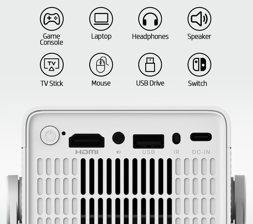 Projektor je vybaven čtyřjádrovým procesorem H726 (Quad-core, A53) s pamětí 1 GB RAM a 16GB úložištěm. Podporuje dvoupásmovou Wi-Fi 2,4 GHz + 5 GHz pro bezdrátové zrcadlení obrazovky a streamování. Konektivita zahrnuje HDMI, USB, 3,5mm audio výstup a Bluetooth 5.4 pro připojení herních konzolí, notebooků nebo bezdrátových reproduktorů.