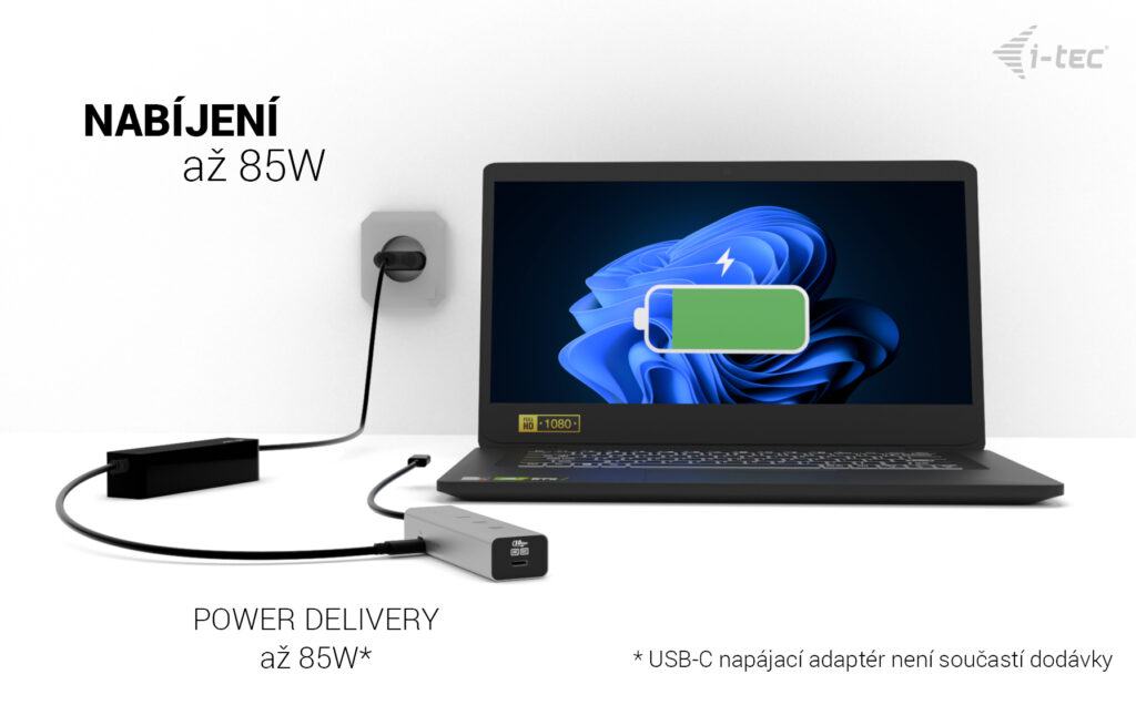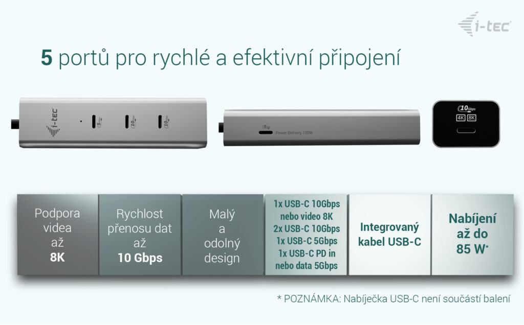 (Registrace)i-tec USB-C Charging Metal HUB 5port with USB-C video 8K, Power Delivery 85W