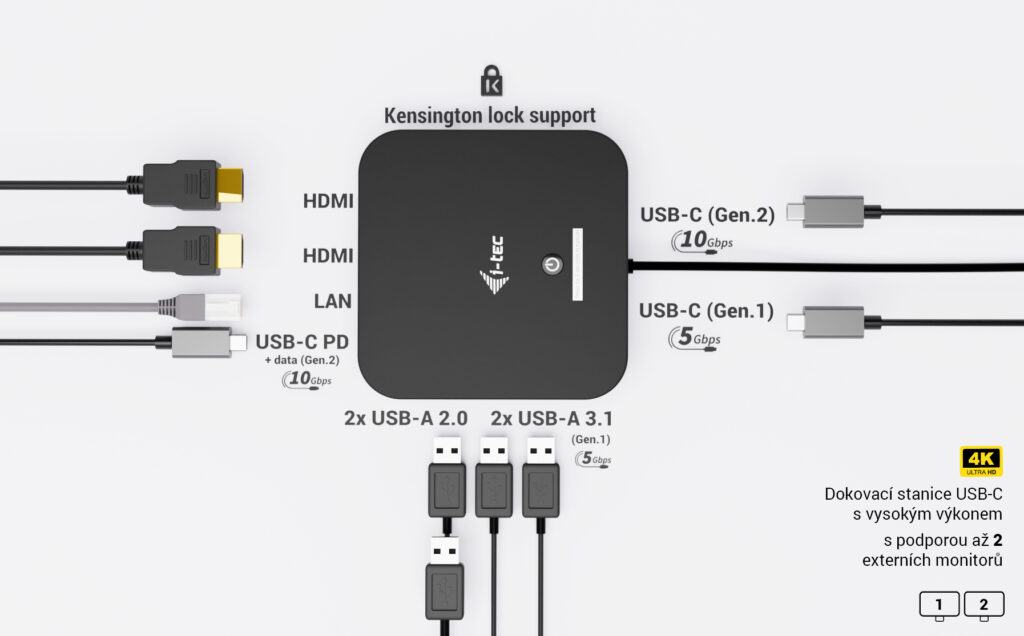 • Kompatibilní s notebooky a tablety s USB-C, USB4 a Thunderbolt rozhraním. (Hostitelské zařízení musí podporovat režim DisplayPort Alt. mode) • 2× HDMI s podporou až dvou monitorů v rozlišení 4K při 60 Hz (macOS podporuje pouze jeden rozšířený displej...Více info