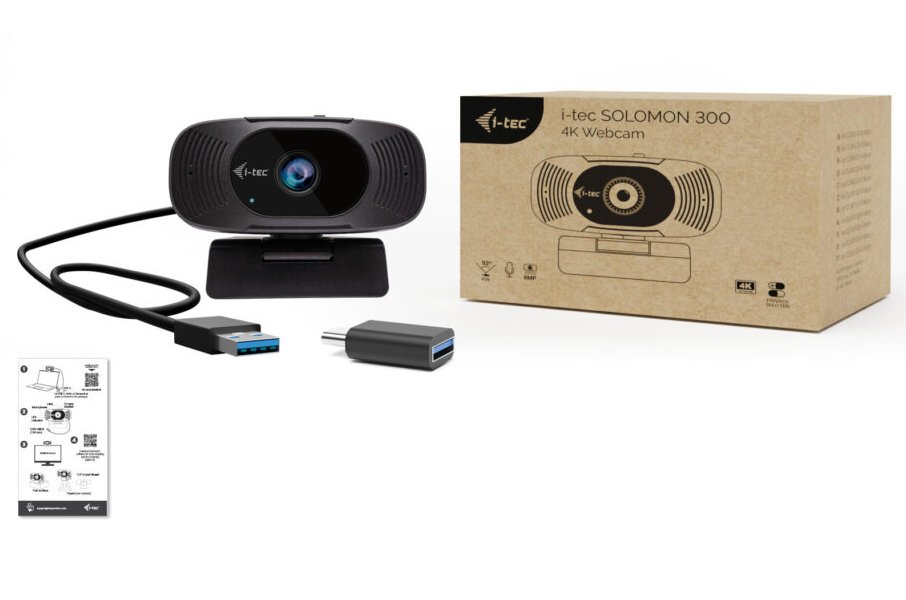 i-tec SOLOMON 300 4K Webcam Profesionální 4K webkamera se širokým zorným úhlem a automatickou optimalizací obrazu pro domácí i firemní použití. Webkamera i-tec SOLOMON 300 přináší skutečné Ultra HD 4K rozlišení 3840 × 2160 px při 30 ...Více info