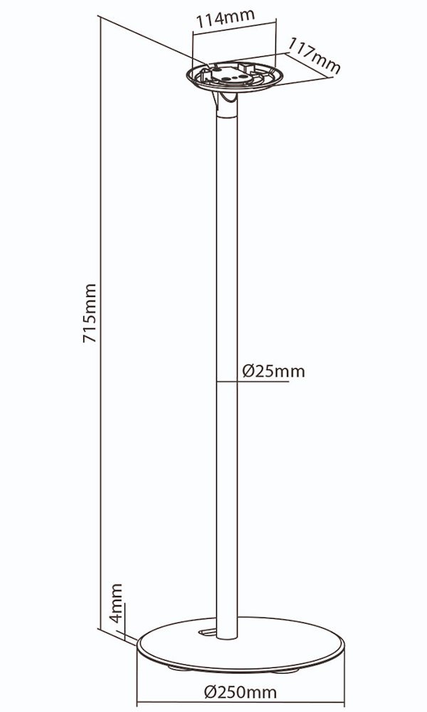 Podlahový stojan urcený výhradne pro reproduktor Sonos® Era 100. Pevná výška 715 mm pro optimální poslech, integrovaný kabelový management, robustní kovová konstrukce s ABS prvky, nosnost 3 kg, cerné provedení.Více info