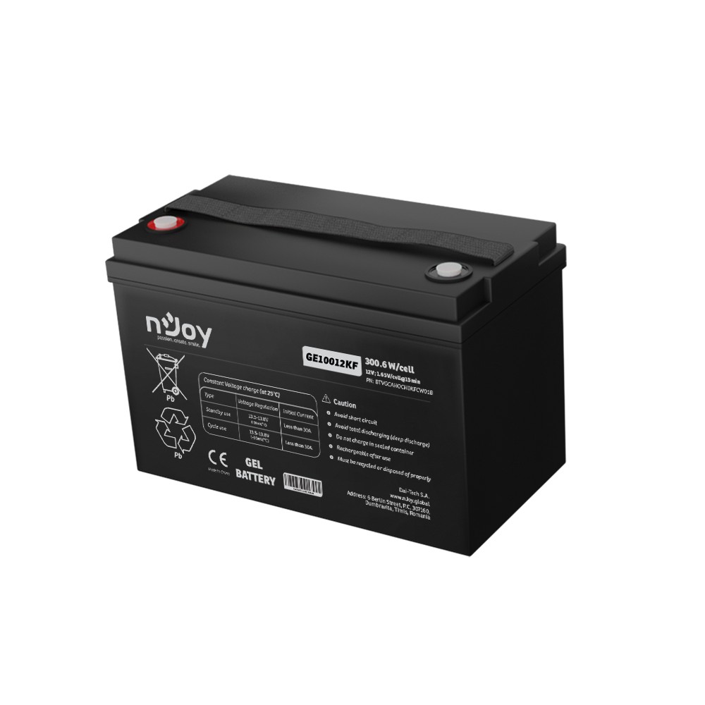 Baterie nJoy GE10012KF s kapacitou 100 Ah je vlajkovou lodí v segmentu gelových akumulátorů nJoy. Je navržena pro uživatele, kteří nehledají kompromisy a potřebují zajistit energii pro své systémy po dobu mnoha hodin až dní. Díky gelové technologii (Gel Deep Cycle) nabízí vynikající stabilitu a odolnost i při náročném cyklickém provozu.