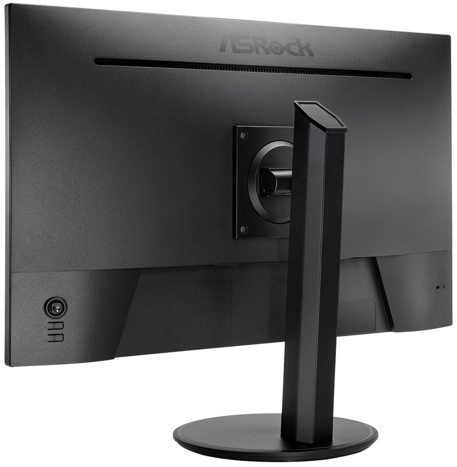Monitor vyniká moderním minimalistickým designem v černém provedení s bezrámečkovým designem ze tří stran. Ergonomický stojan umožňuje nastavení výšky 0 až 130 mm, náklon -5° až +23°, otáčení o 360° a pivot ± 90° pro optimální pracovní pozici. Technologie Flicker Free a ASRock Low Blue Light snižují namáhání očí při dlouhodobém používání.