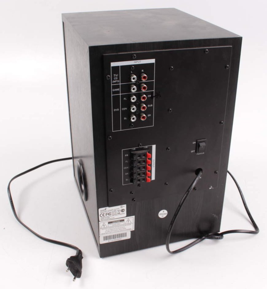 Elegantní systém reproduktorů v konfiguraci 5.1 nabízí celkový výkon 125 W. Sestava v dřevěném provedení tvořena kvalitním subwooferem s 6" reproduktorem, který disponuje integrovaným zesilovačem a výkonem 45 W. Subwoofer je doplněn pěti satelity, kdy každý disponuje výkonem 16 W. Součástí balení je napájecí adaptér 100-240 V.