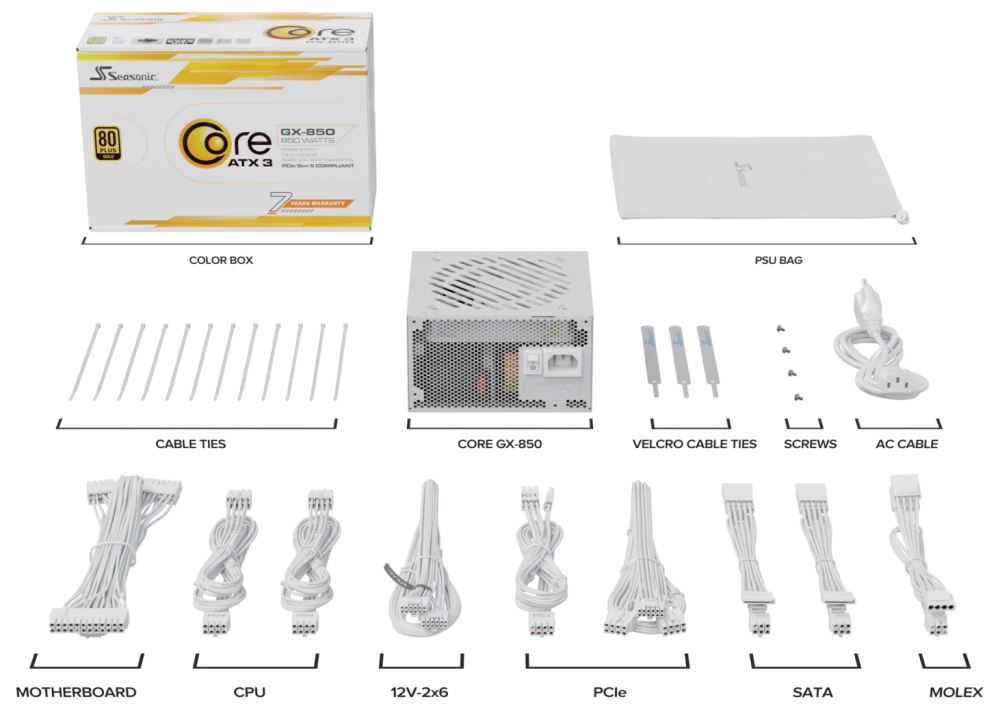 SEASONIC zdroj 850W Core GX-850, ATX 3.1, 80+ Gold, bílý