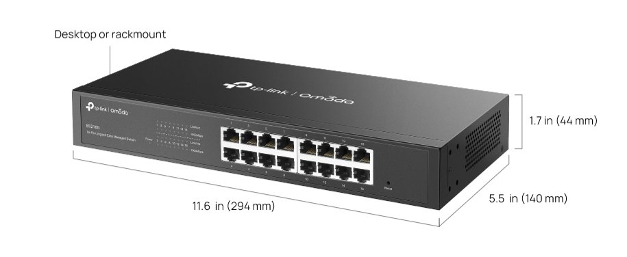 Switch ES216G je navržený pro profesionální, ale zároveň nenáročný provoz. Využijete jej jak v dohledových systémech, tak i v běžném firemním prostředí. Díky plug-and-play funkci je ihned připravený k použití, zatímco centralizovaná správa přes Omada SDN umožňuje pokročilé nastavení a monitoring. Bezventilátorová konstrukce zajistí zcela tichý chod a díky robustnímu kovovému tělu jej snadno namontujete do racku i na stůl.